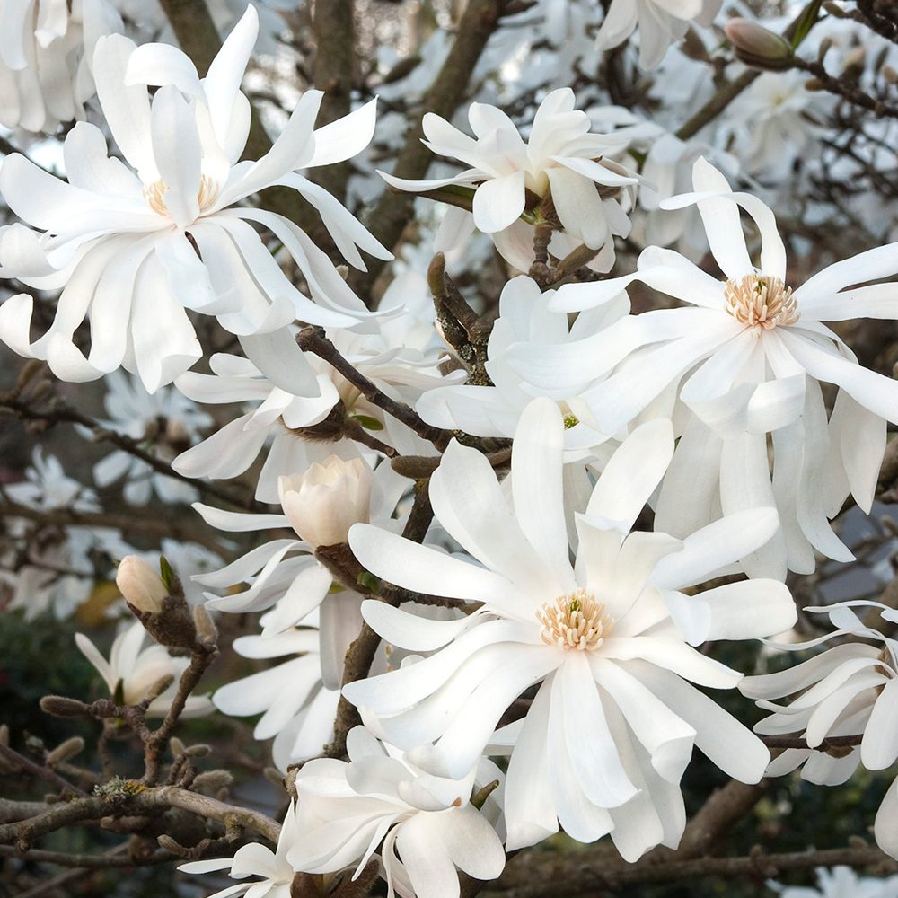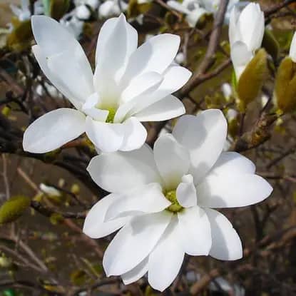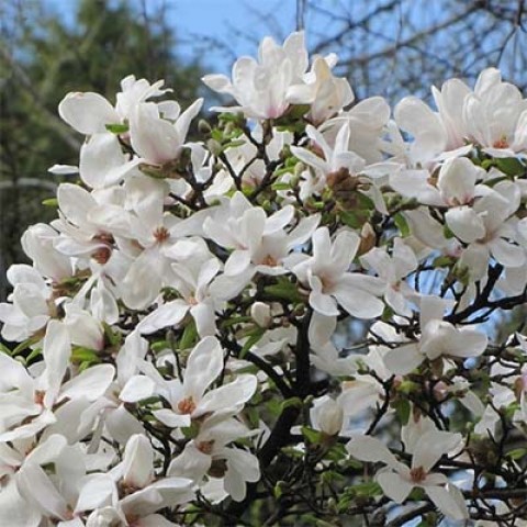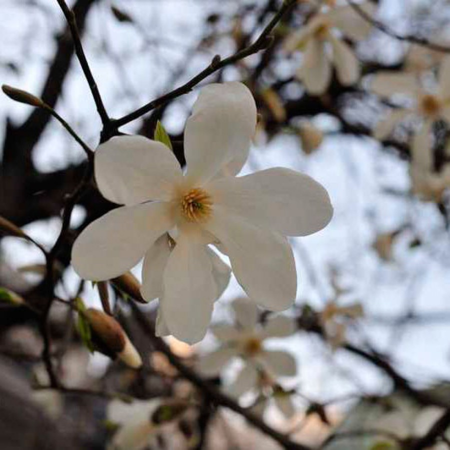 Магнолия Звездчатая – листопадный куст или небольшое деревце с округлой кроной. Листья обратнояйцевидные 6-10 см длиной и 5 см в ширину, светло-зеленые или зеленые, блестящие. Цветение март-апрель. Цветет до распускания листьев. Звездчатые цветки с 12-15 (до 40) лепестками, белые с приятным запахом.