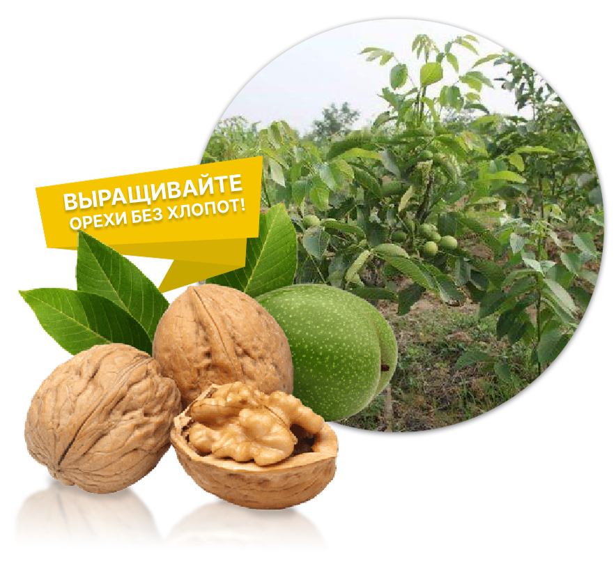 | До 50 кг грецких орехов — первый урожай! | Крупные плоды, которые хорошо хранятся и устойчивы к болезням. |