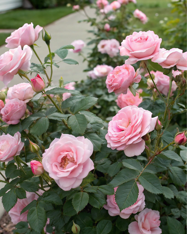 Пионовидные, ярко-розовые цветки, до 80 лепестков в одном бутоне. Один из самых ароматных и изысканных сортов.