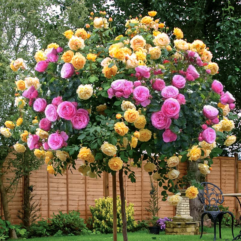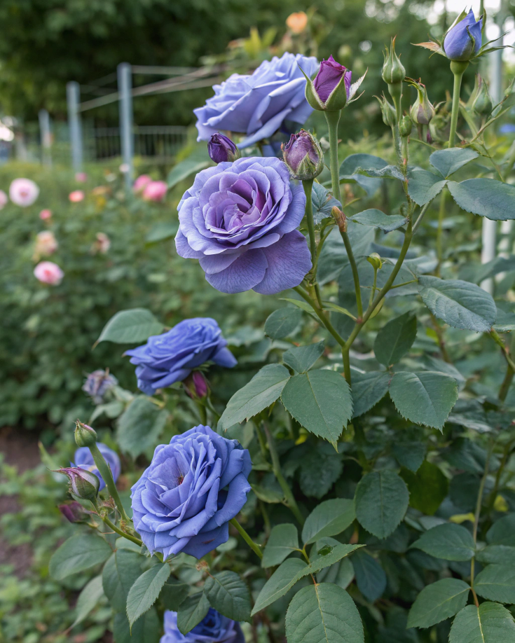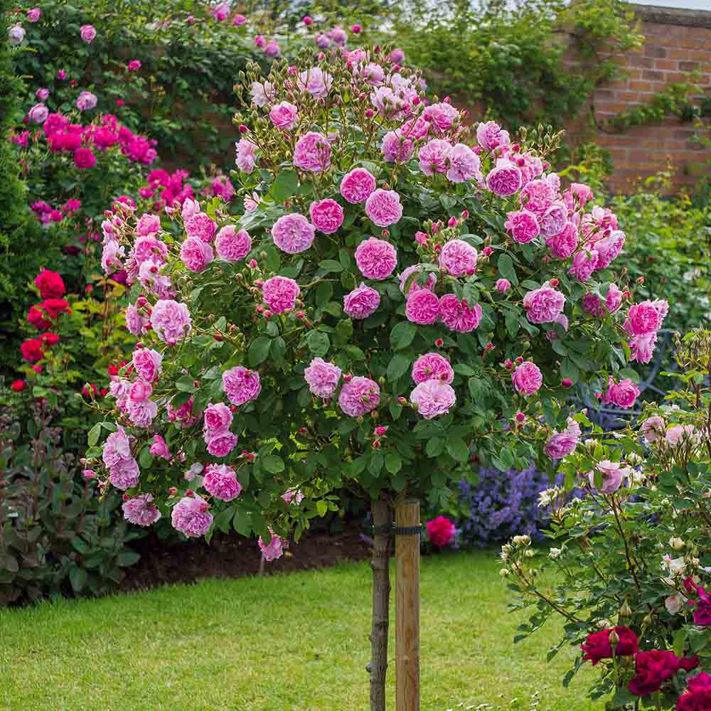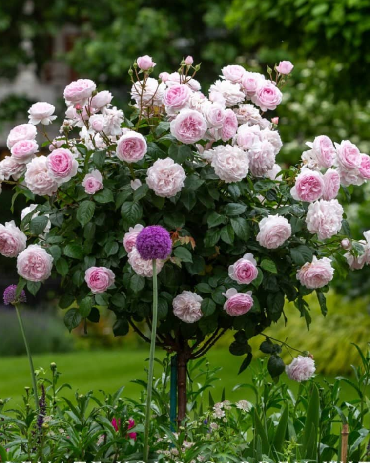 Глубокий сине-лавандовый оттенок, бархатистые лепестки, густой куст и неповторимый аромат. Штамб формирует роскошную "шапку".